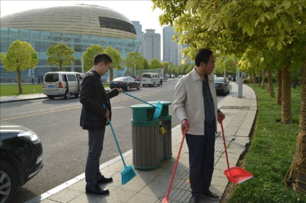 顾不上欣赏春光明媚、水静人和的美景,碧波荡漾的如意湖畔出现了建投志愿者服务队的身影,大家拿起扫帚、垃圾袋等工具一路前行,看见沿岸偶尔零散的垃圾或不易发现的纸屑便主动上前进行清理,很快,如意湖周边的石柱、围栏、长椅就焕然一新,广场周边散落的纸屑、烟头也被清扫干净。