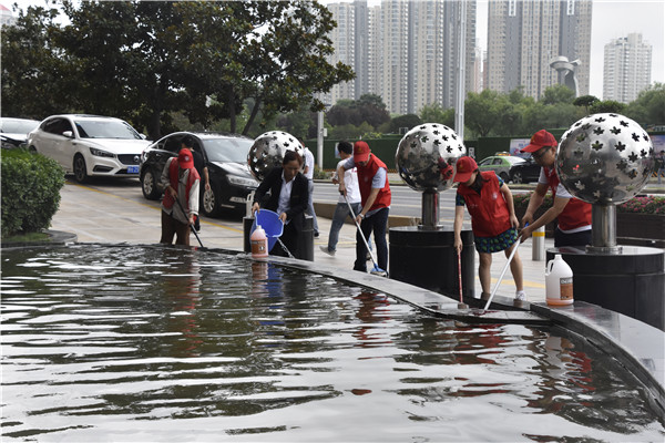 活动中,志愿者头戴小红帽,身穿红马甲,对中油花园酒店门口及周围的地面垃圾进行捡拾,对暴雨后路面、绿化带里的积存垃圾进行清理,整治各类卫生死角,杜绝垃圾乱堆乱放酒店周边的不文明行为进行劝导,将附近的共享单车进行有序摆放,力打造“整洁、有序、舒适、愉悦”的辖区环境;志愿者们向市民发放《郑州市文明行为促进条例》,耐心为市民宣传解释《条例》内容引导辖区群众积极加入志愿服务队伍,切实营造“人人参与”文明创建“人人共享”文明成果的良好局面。