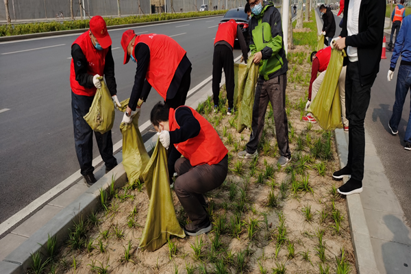 为推动爱国卫生运动深入开展,积极营造良好卫生环境,助力疫情防控攻坚战,4月9日上午,郑州建投集团40名志愿者在集团党委书记、董事长、总经理秦广远的带领下组织开展了以“防疫有我,爱卫同行”暨“全城清洁”为主题的爱国卫生清洁志愿服务行动,通过对金水西路绿化带等地卫生环境进行集中清理,拉开了爱国卫生月系列活动的序幕。